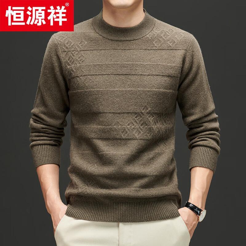 Hengyuanxiang Men's Round Neck Yak Down Blend Jacquard Wool Sweater — buy online with free worldwide shipping!