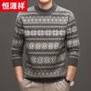 Hengyuanxiang Men's 100% Wool Jacquard Round Neck Thickened Sweater