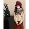Jacquard Christmas New Red Fair Island Sweater Women's Autumn and Winter New Retro Pullover Soft Waxy Knitted Top