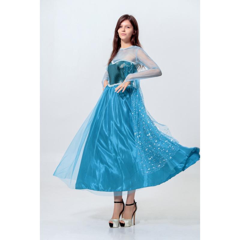 Frozen Princess Elsa Dress Long Sleeve Dress Halloween Costume Cinderella Queen Show Costume