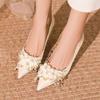 Leisure Classic Pumps Female Slip On Thin High Heels Pointed Toe Wedding Shoes for Women Flower Crystal Bling Summer Shoes