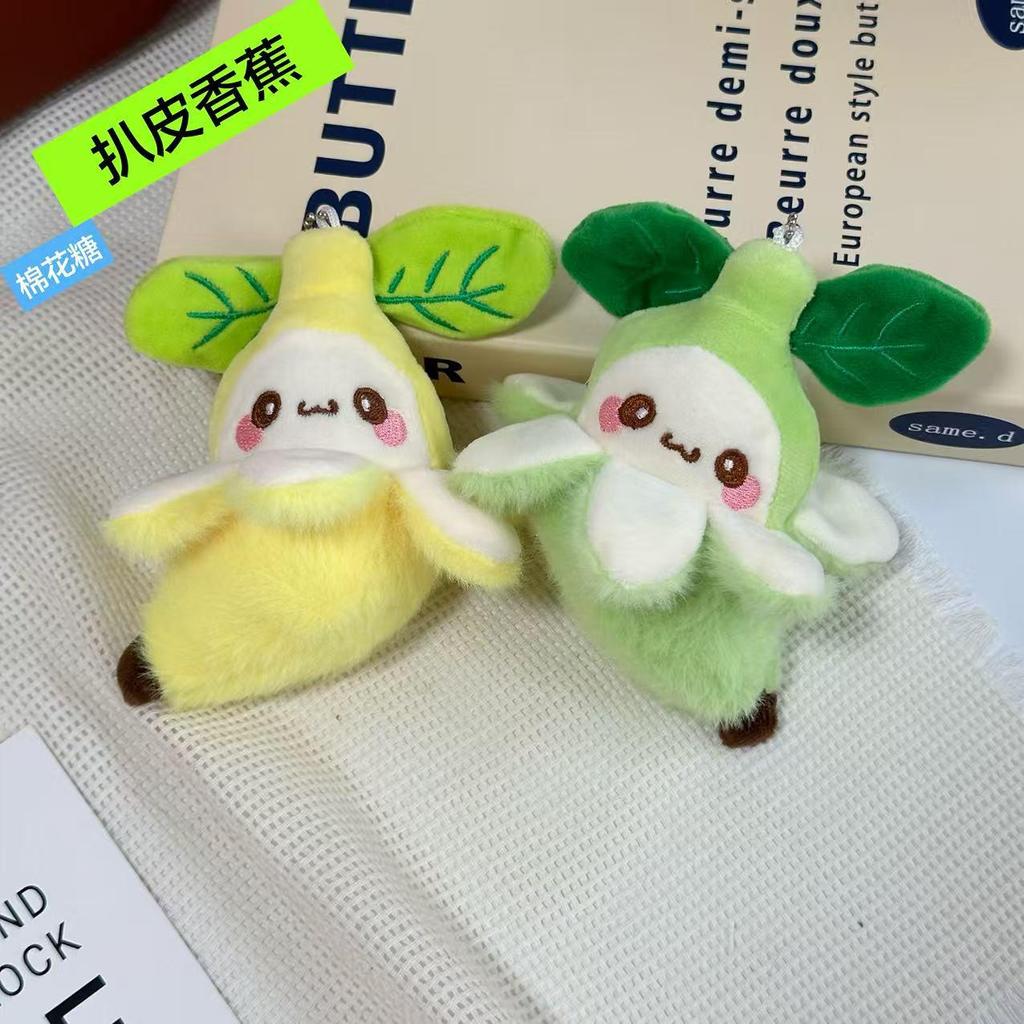 Cartoon Banana Pendant Plush Toy - Funny Peeling Banana Keychain for Kids