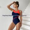 This professional racing swimsuit is designed specifically for women who value both style and performance. Featuring a chic colorblock design, it adds a modern twist to the classic one-piece swimsuit. Crafted from high-quality polyester, it ensures durability and comfort during intense swimming sessions. The solid pattern provides a sleek and streamlined look, perfect for competitive or casual swimmers. With its triangle bikini style, this swimsuit offers a flattering fit while staying securely in place, making it ideal for both European and American tastes.
