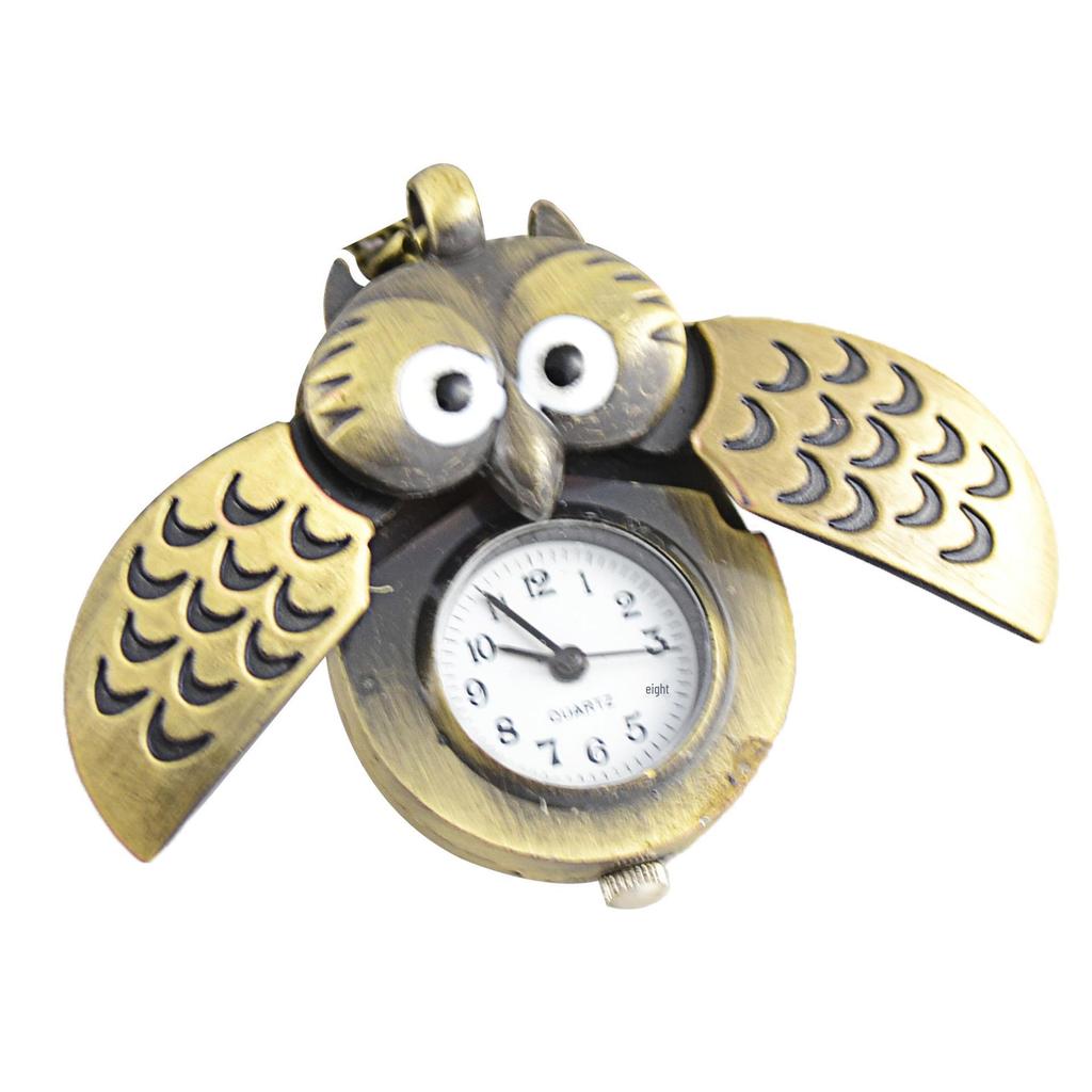 Vintage Owl Pendant Necklace with Antique Bronze Slide Cover Pocket Watch — buy online with free worldwide shipping!