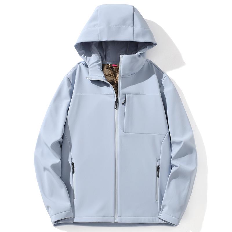 Stay warm and stylish during the colder months with this windproof softshell jacket, perfect for both men and women in autumn and winter. Crafted from insulated polyester, this jacket ensures you stay cozy while braving the elements. The long sleeves and tailored neckline provide a snug fit, complemented by the solid pattern for a classic look. The hood adds an extra layer of warmth, making it an ideal outdoor cardigan for chilly days.