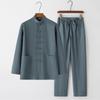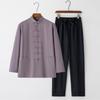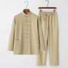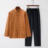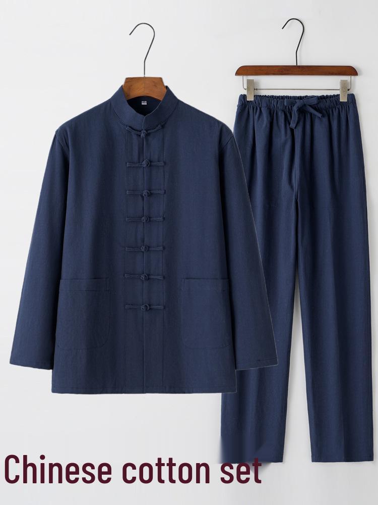 Elevate your style with this elegant two-piece set, perfect for those who appreciate traditional Chinese fashion. Crafted entirely from high-quality cotton, this long-sleeve Tang suit set ensures comfort and breathability. The design features classic frog buttons for a touch of authenticity, making it ideal for both casual wear and more formal occasions. Whether you're practicing Tai Chi or enjoying a relaxed tea session, this retro-inspired outfit offers a perfect blend of comfort and sophistication.