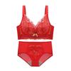 Benming Year Red Bridal Push-Up Bra Set for Women - Adjustable, Small Chest