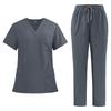This unisex V-neck medical scrub suit is designed for both comfort and functionality. It features a sleek V-neck top complemented by straight-leg pants, offering a professional appearance suitable for various healthcare environments. Crafted from high-quality polyester, the material ensures durability and ease of care, making it ideal for long shifts. The scrub suit is equipped with multiple pockets, providing convenient storage for essential items throughout the day. Its versatile design caters to all healthcare professionals, ensuring both practicality and comfort.