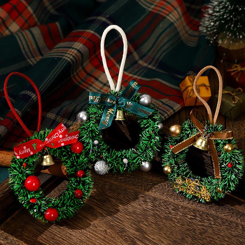 Merry Christmas Wreath Pendant With Bell Car Door Hanging Decoration Xmas Party Christmas Tree Decor Accessories
