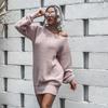 Women's autumn and winter dress casual off-the-shoulder lantern sleeve knitted sweater skirt — buy online with free worldwide shipping!