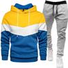 2024 Men's Fashion Spliced Hooded Sweatshirt & Long Pants Two-Piece Sports Suit for Autumn/Spring — buy online with free worldwide shipping!