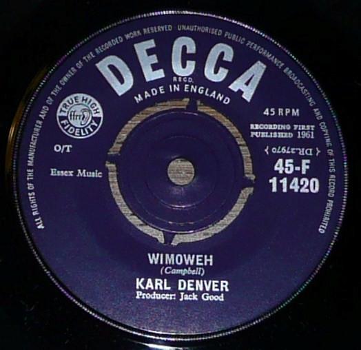 7inch Record KARL DENVER - Wimoweh 45F11420 Decca 1962 UK Rock Used — buy online with free worldwide shipping!