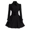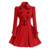 Winter Ladies Casual Long Double-breasted Woolen Coat Solid Color Long Sleeve Jacket for Female