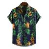 Turn-down Collar Short Sleeve Men Shirt Buttons Down Summer Coconut Tree Print Hawaiian Shirt for Travel