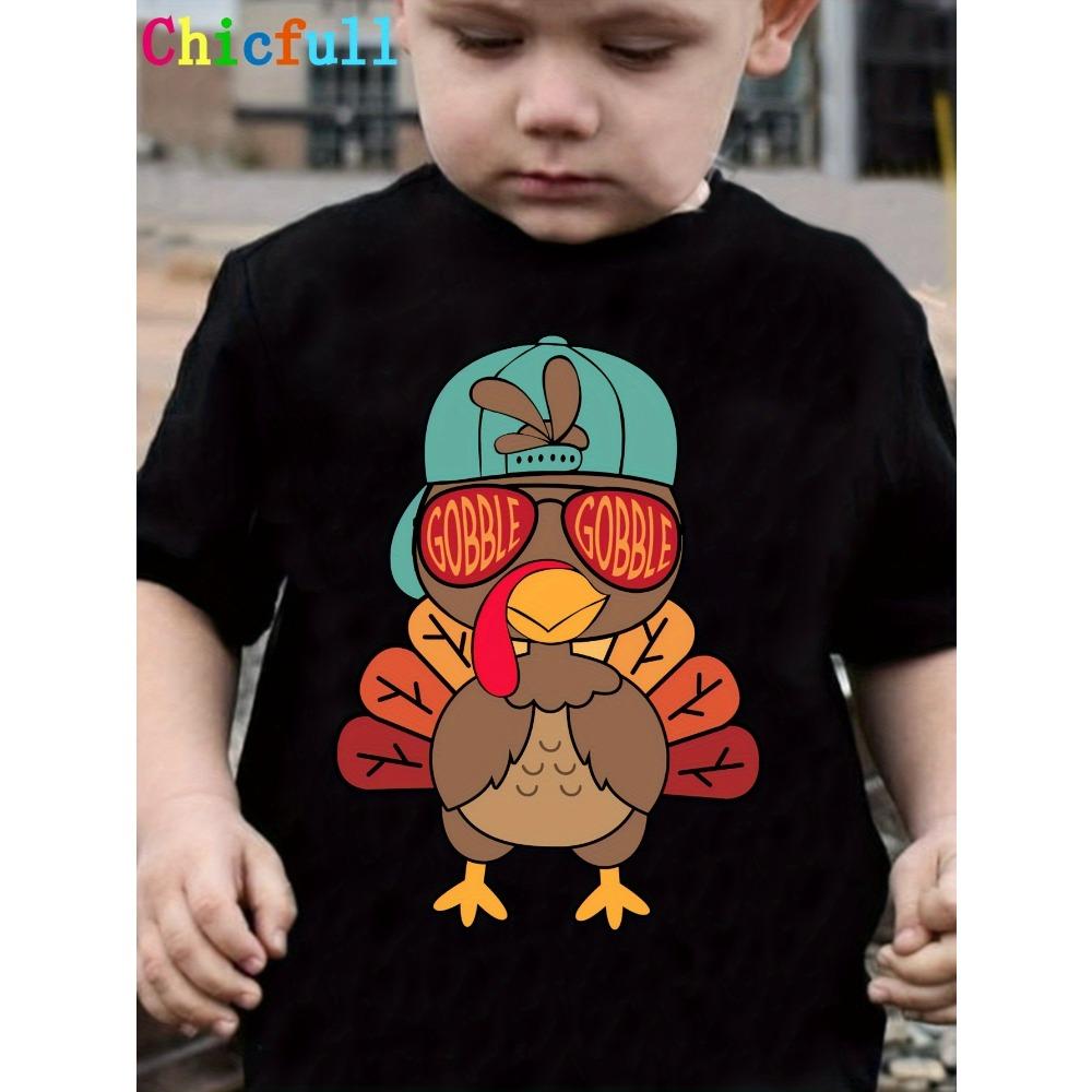 Fashionable Boy Turkey Print T-shirt Thanksgiving Clothing Short-sleeved Round-neck Casual Top — buy online with free worldwide shipping!