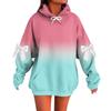 Ladies' Gradient Printed Bow Long Sleeved Loose Fitting Headband With Rope Hooded Sweatshirt Top
