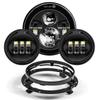 For 7" Led Projector Motorcycle Headlight + 4 1/2 Passing Lights For Touring Electra Glide Black 7 Inch Led Motorcycle Headlight