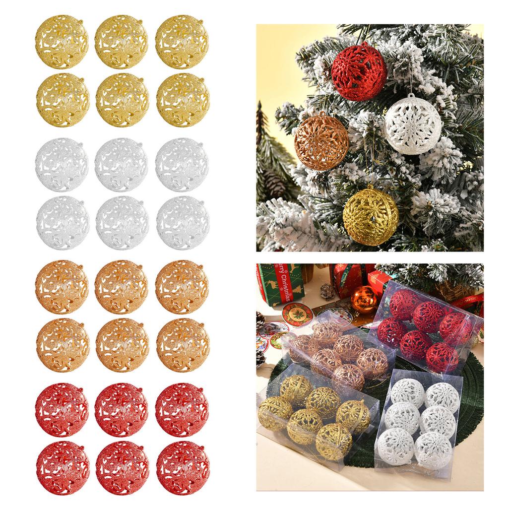 Each 55mm diameter Christmas ball ornament showcases delicate hollowed pattern combined with luxurious glittering finish, offering unique blend of elegant and durability with scratch resistant surfaces and reinforced hanging string for secure placement.