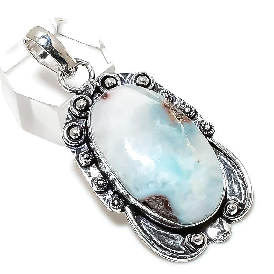 Caribbean Larimar Gemstone 925 Sterling Silver Jewelry Pendant 2.05"