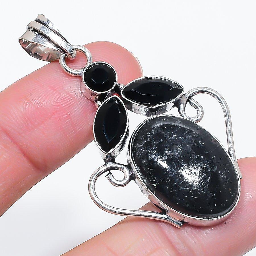 Nuummite, Spinel Gemstone 925 Sterling Silver Jewelry Pendant 2.17"