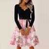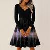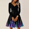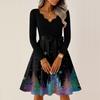 Women's Casual Fashion V-neck Long Sleeved Retro Christmas Print Retro Dress