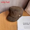 Simple Solid Color Gold Logo Decor Women Casual Suede Beret Hat Fall For
