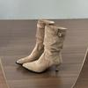 British Style Retro Fine High-heeled Pointed Short Boots Women's 2025 New Autumn with Skirt Height-increasing and Thin Stacking Boots