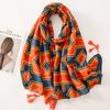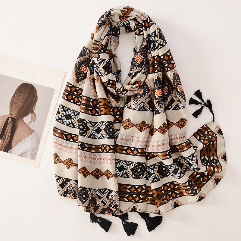 Beige Coffee Scarf Luxury Thin Womens Scarves Spring Floral Hijab Veils Soft Cotton Shawl Wrap Tassel Viscose Muslim Woman Hijab