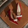 8820 Pointed High Heels Women's Thin Heels 2025 New Pearl Shallow Mouth Single Shoes Show Clothes Red Bridal Wedding Shoes