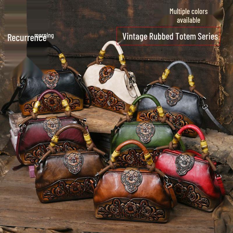 Retro Women's Embossed Crossbody Bag - European and American Style, Spliced Design, Handmade Color Rubbing Handbag — buy online with free worldwide shipping!