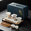 Suet Jade Tea Set, White Porcelain Travel Kung Fu Tea Set, Tea Tray Set, Cover Bowl Teacup