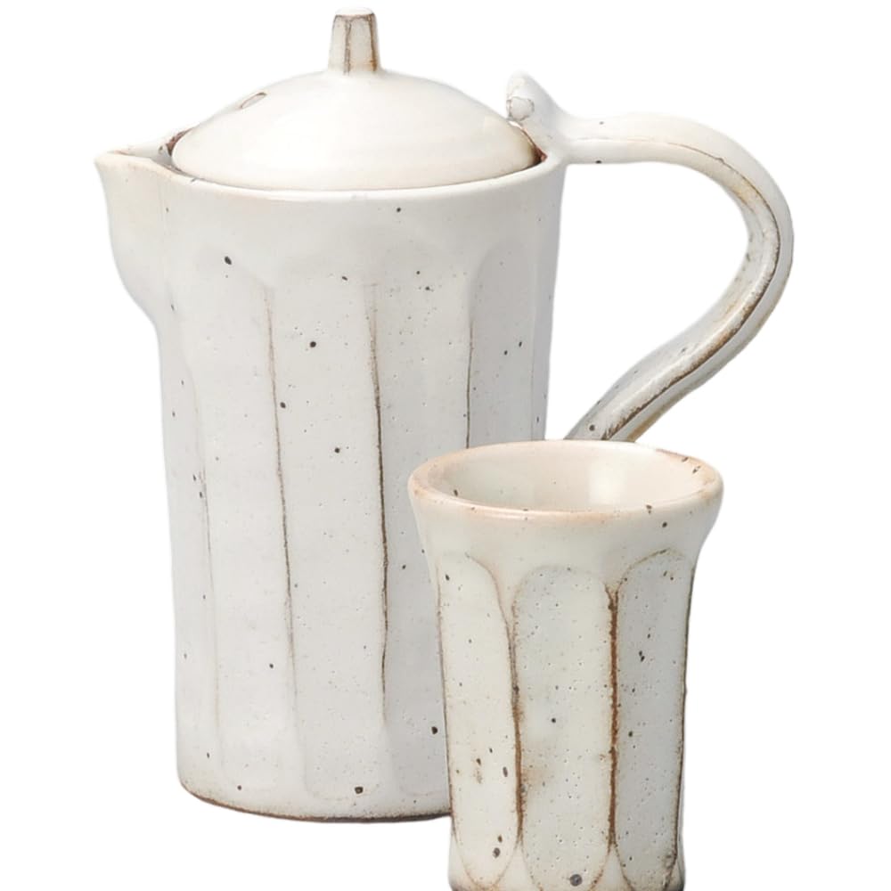 Sake Tokkuri and Ochoko Diameter 6cm x Height Kohiki Mino Cold Sake Japanese Sake Ale-net Set, (Sake Cup) Set, 10.7cm, 190ml, Beveled, Ceramic, Ware, — buy online with free worldwide shipping!