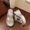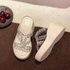 2025 New Slippers Women's Summer Fashion Versatile Outer Wear Heightened Thick Bottom Slope Heel Rhinestone Premium High Heel Cool Slippers