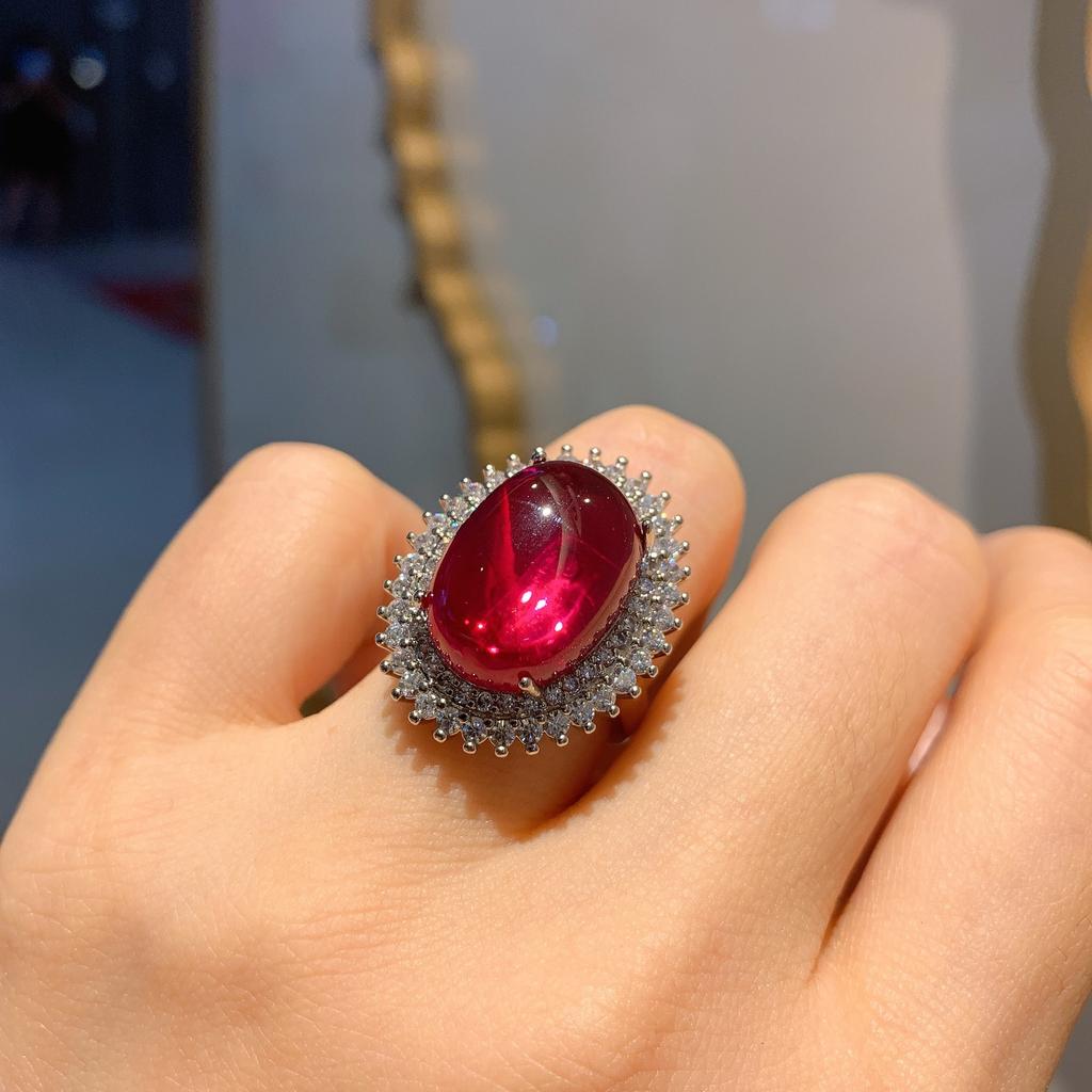 Jewelry Ice Seed Fluorescent Denier Pigeon Blood Red Treasure Plain Ring Women'S Temperament 13 * 18
