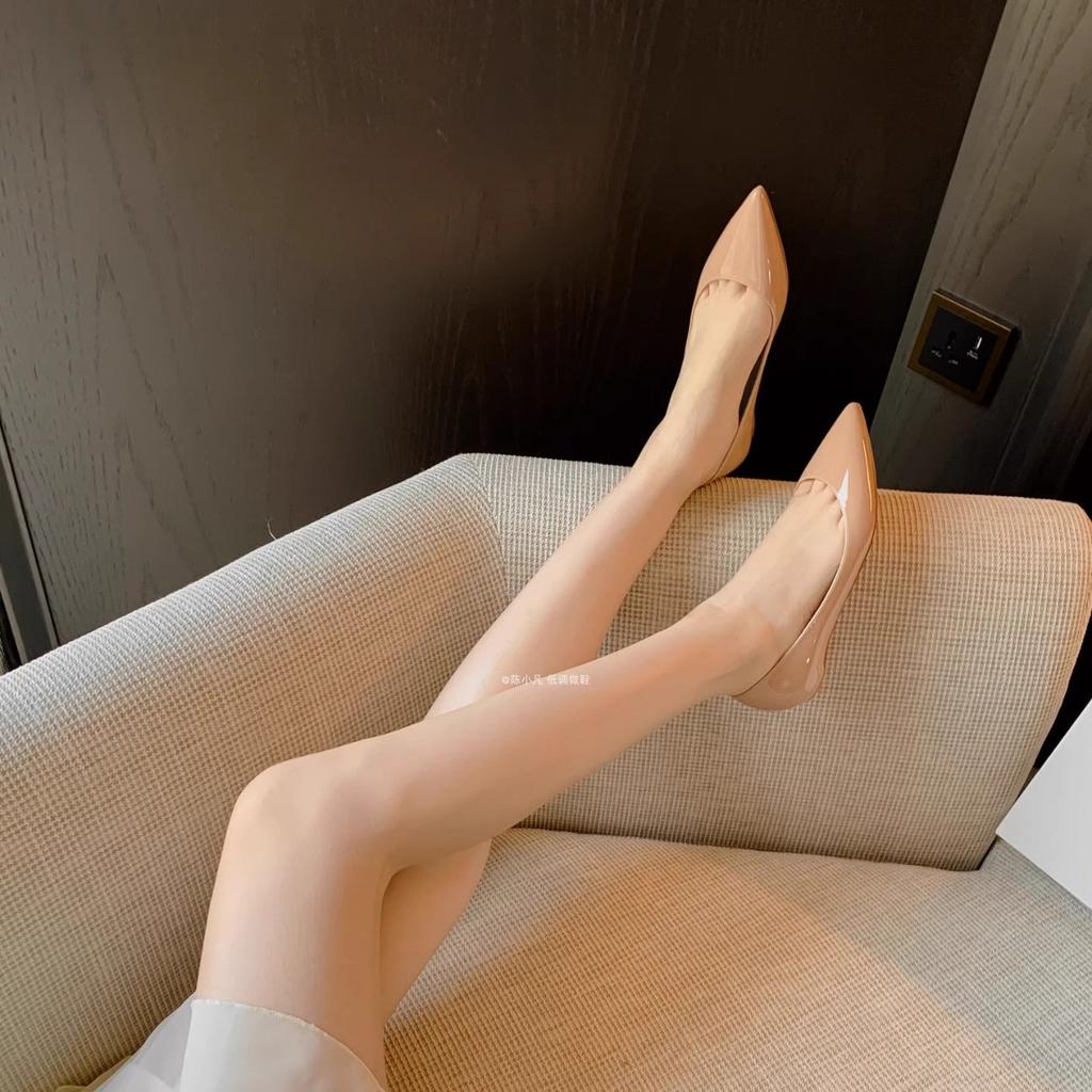 Ziyan nude single shoes women's patent leather 2025 summer new red-soled shoes temperament shallow mouth pointed flat shoes inner height increase — buy online with free worldwide shipping!