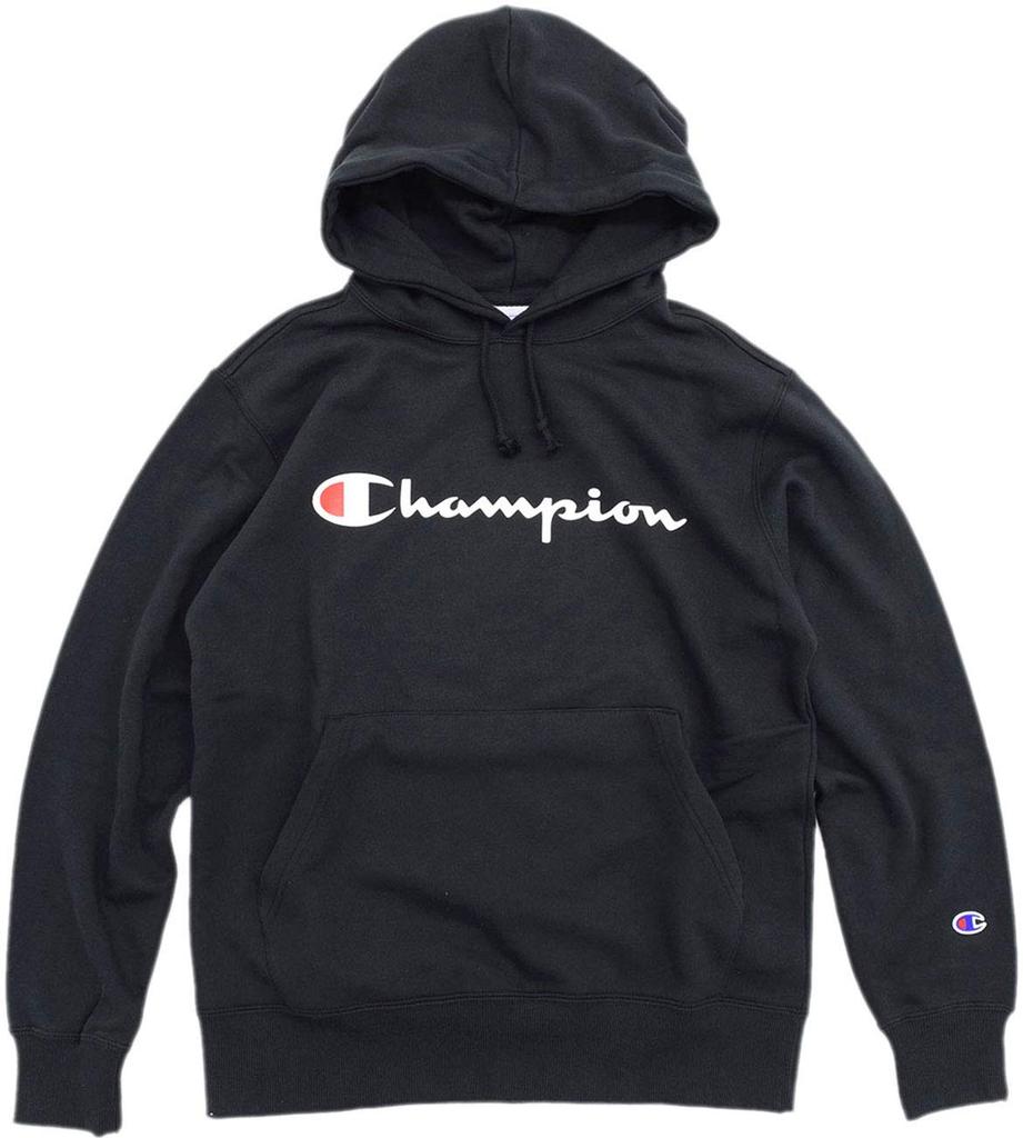 Champion Long Sleeve Hooded Sweatshirt with Script Logo Size Medium Men's Fleece-Lined Print, C3-Q107, Black, — buy products online with free worldwide shipping!