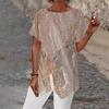 Women's Geometric Print Round Neck Loose Irregular Hem Short Sleeve T-Shirt — buy online with free worldwide shipping!