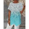 Women's Geometric Print Round Neck Loose Irregular Hem Short Sleeve T-Shirt