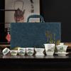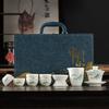 White Porcelain Kung Fu Tea Set Gift Box High-end Travel Tea Set Cover Bowl Teacup Suet Jade