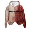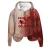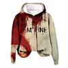 Women's 3D Bloody Letters Printed Long Sleeved Loose Hooded Sweatshirt New Halloween Ladies Casual Long Sleeved Pullover