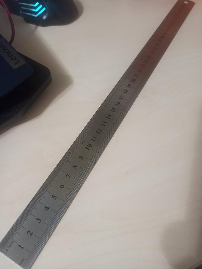 Construction ruler 40 cm Double-sided, cm on one side, inches on the other Metallic, thick, does not bend. Quite heavy The quality is excellent, the numbers are clear. Different sizes to choose from 👌