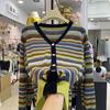 Contrasting color rainbow stripe knitted cardigan autumn and winter new fashion temperament age-reducing and thin long-sleeved sweater — buy online with free worldwide shipping!