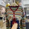 Contrasting Color Rainbow Stripe Knitted Cardigan Autumn and Winter New Fashion Temperament Age-reducing and Thin Long-sleeved Sweater
