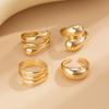 Sweet and Cool Geometric Baroque Pearl Ring Set, Personalized Liquid Metal Glossy Ring
