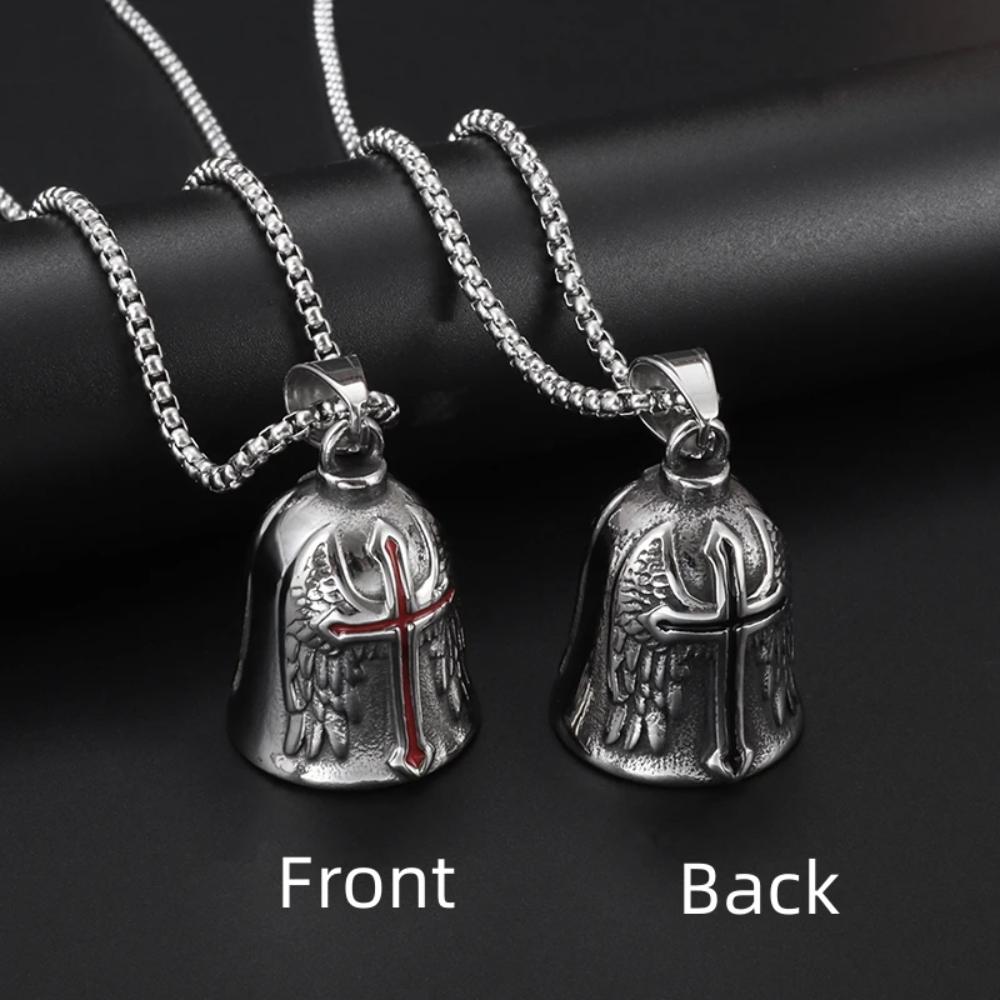 Biker Bell Carved Red Cross Wings Pendant Motorcycle Riding Bell Necklace Personality Men\'s Lucky Amulet Jewelry Wholesale