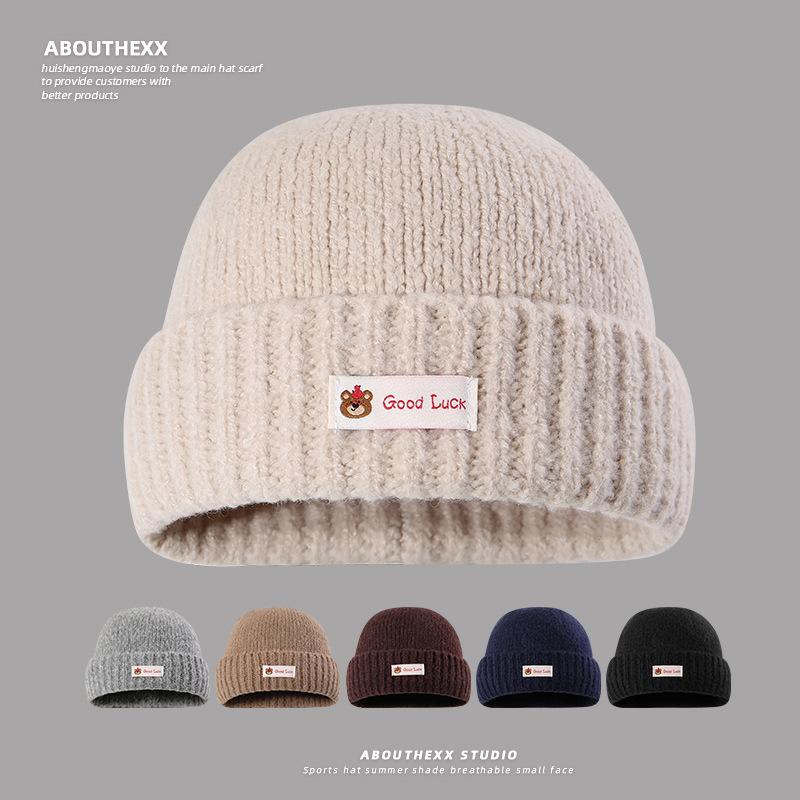 New Autumn and Winter Big Head Warm Hat for Women Showing Face Small Knitted Hat Outdoor Casual Ear Protection Cold Hat Men Pull Out Hat