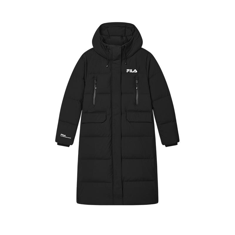 Fila Original Long Down Jacket Solid Color Simple Warm Long Hooded Down Coat Women Outerwear Black F11W449906FBK