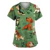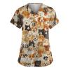 Women's Fashion Short Sleeve Cute Animal Printed V-Neck Pocket Workwear Tops