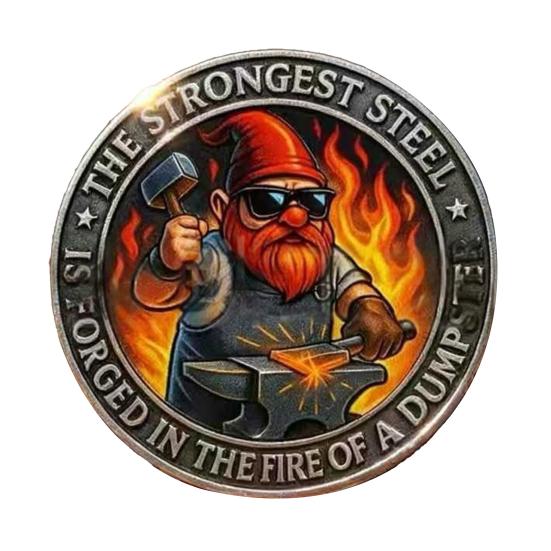Humorous Gnome Theme: Featuring a whimsical gnome forging steel, this coin injects humor and positivity into crisis events through witty text, making it a conversation starter and a standout piece in any collection.