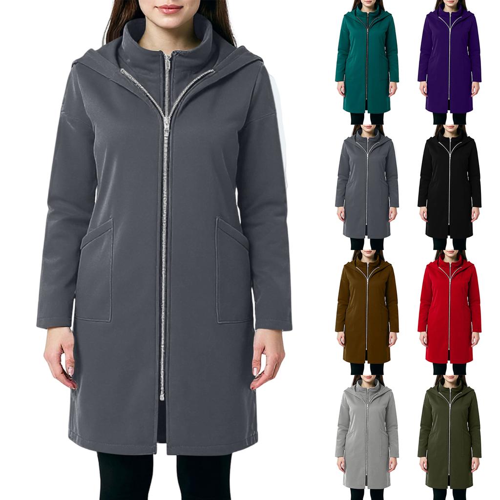 Women's Fashion Casual Solid Color Hooded Pocket Long Sweatshirt With Zipper, Mid-Length Fake Two-Piece Loose Coat — buy online with free worldwide shipping!